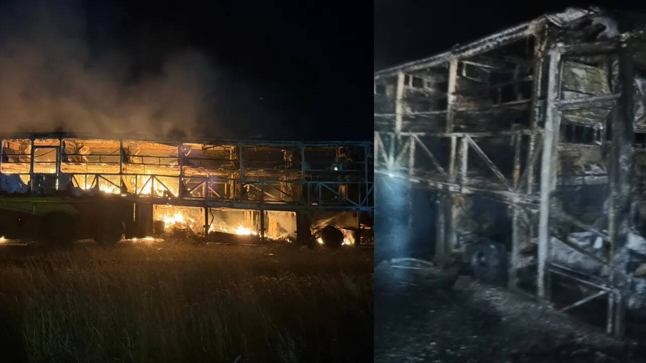 આંધ્રપ્રદેશના કુર્નૂલમાં એક ચાલતી બસમાં આગ લાગી હતી અને અત્યાર સુધીમાં 12 લોકોના મોતની પુષ્ટિ થઈ છે, પરંતુ મૃત્યુઆંક વધી શકે છે. અહેવાલો અનુસાર, અકસ્માત સમયે કાવેરી ટ્રાવેલ્સની બસમાં ડ્રાઇવર અને સહાયક સહિત 42 મુસાફરો હતા. પોલીસ અધિક્ષક (એસપી) એ જણાવ્યું કે બસમાં મોટરસાઇકલ સાથે અથડાયા બાદ આગ લાગી હતી. દુર્ઘટનામાં ઘાયલ થયેલા 15 લોકોને અત્યાર સુધી હોસ્પિટલમાં લઈ જવામાં આવ્યા છે. આગ પર કાબૂ મેળવી લેવામાં આવ્યો છે અને કૂલિંગ ઓપરેશન ચાલુ છે. આ અકસ્માત શુક્રવારે સવારે 3 વાગ્યાની આસપાસ થયો હતો, જ્યારે ટુ-વ્હીલર સાથે અથડાયા બાદ વોલ્વો બસમાં આગ લાગી હતી અને તે સંપૂર્ણપણે બળીને રાખ થઈ ગઈ હતી. બસ હૈદરાબાદથી બેંગ્લોર જઈ રહી હતી.
