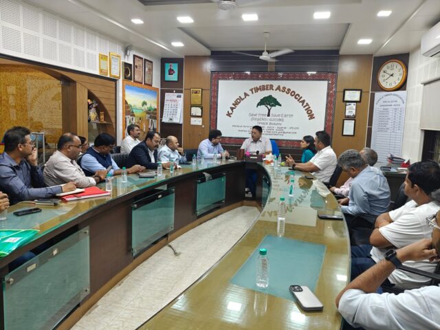 ગાંધીધામમાં સેન્ટ્રલ વેરહાઉસિંગ કોર્પોરેશન (CWC)ના પ્રતિનિધિઓ અને રેલ અધિકારીઓ વચ્ચે ગાંધીધામ ક્ષેત્રથી દિલ્હી અને અન્ય ઉત્તરી ક્ષેત્રો માટે ટિંબરના રેલ પરિવહનને પ્રોત્સાહન આપવા માટે એક મહત્વપૂર્ણ બેઠક યોજાઈ.