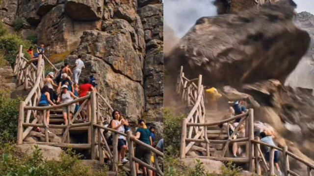 વીડિયોમાં તમે જોઈ શકો છો કે કેવી રીતે પહાડ પર ચઢવા માટે લાકડાના રસ્તા બનાવવામાં આવ્યા છે અને ઘણા લોકો તેના પર ચાલી રહ્યા છે. અચાનક એક મોટો પથ્થર તૂટીને નીચે પડે છે. આ પછી એક પછી એક પથ્થરો નીચે પડી રહ્યા છે, જ્યારે લોકો પોતાનો જીવ બચાવવાનો પ્રયાસ કરે છે. જો કે સામાન્ય રીતે આ ભયાનક દુર્ઘટનાની તીવ્રતાના કારણે કોઈ પણ વ્યક્તિ માટે બચવું મુશ્કેલ બન્યું હશે, પરંતુ તે AI દ્વારા બનાવવામાં આવેલ વિડિયો હોવાથી તે જોઈ શકાય છે કે ઘણા લોકો સુરક્ષિત રીતે ભાગી ગયા છે, જે ખૂબ જ આશ્ચર્યજનક છે.