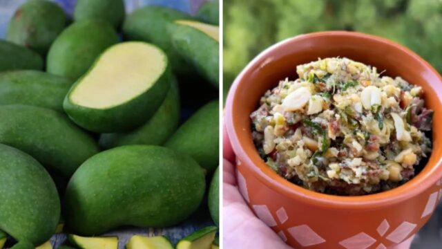 એપ્રિલની શરૂઆત પછી, કાચા જરદાળુ, પાકેલા કેરી અને જંગલી ફળો દરેક જગ્યાએ બજારોમાં ઉપલબ્ધ છે. કેરી સાંભળતાંની સાથે જ દરેકને તેના મોંમાં પાણી મળે છે. કેરીનો સ્વાદ ખૂબ જ મીઠી અને ખાટા હોય છે. ઉનાળાના મહિનાઓ દરમિયાન, કેરી અમાતી, ચટણી, મુરબ્બો, કેરી અથાણું વગેરે જેવા કેરીનો ઉપયોગ કરીને ઘણી વાનગીઓ બનાવવામાં આવે છે. કેરીનો ઉપયોગ માછલીની વાનગીઓમાં પણ થાય છે. કેરી ખોરાક સાથે પીવામાં આવે છે. તમે દાળ, ચોખા અથવા બ્રેડ બનાવી શકો છો અને કેરી ચટણી અથવા વહનનો કરાર કરી શકો છો. જો તમે આખો સમય કેરી ચટણી ખાવાથી કંટાળી ગયા છો, તો તમે કેરીનો કરાર કરી શકો છો. કરી પેસ્ટ બનાવવા માટે તે વધુ સમય લેતો નથી. જો તમારે ટૂંકા સમયમાં ઝડપી વાનગીઓ બનાવવાની જરૂર હોય, તો તમે કરી પેસ્ટ બનાવી શકો છો. આ કેક સરળતાથી એક અઠવાડિયા સુધી ચાલે છે. કેરીચા કરાર કરવાની સરળ પદ્ધતિ જાણો.