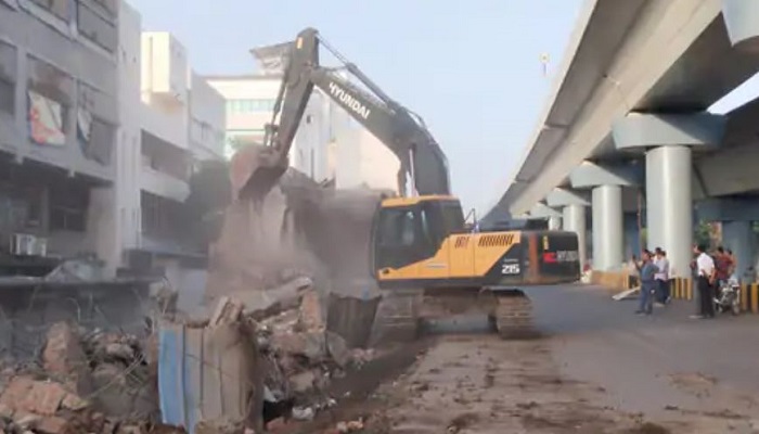 ભાવનગરઃ શહેરના બોર તળાવના નાકે મુખ્ય રોડ પર આવેલા સરિતા શોપિંગ સેન્ટરમાં ગેરકાયદે 31 જેટલી દૂકાનોને ડિમોલેશન કરવા મ્યુનિ.કોર્પોરેશને પોલીસના બેદોબસ્ત સાથે ઓપરેશન હાથ ધર્યુ હતું. અને 31 જેટલી દુકાનો તોડી પાડી જગ્યા ખુલ્લી કરવામાં આવી હતી.