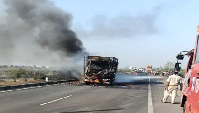 સુરેન્દ્રનગર, 25 ફેબ્રુઆરી 2026:   જિલ્લાના પાટડી તાલુકાના માલવણથી કચ્છ જતા હાઈવે પર અખિયાણા અને ધર્મઠ પાસે દાડમ ભરેલી આઈસર ટ્રકમાં અકસ્માત બાદ આગ લાગતા ટ્રકના ડ્રાઇવર અને કન્ડકટર ગંભીરરીતે દાઝી જતા પ્રાથમિક સારવાર અર્થે ધ્રાંગધ્રા હોસ્પિટલ ખાતે લઇ જવાયા બાદ વધુ સારવાર અર્થે રીફર કરવામાં આવ્યા હતા. ટ્રકમાં આગ લાગ્યાની જાણ થતાં જ  પોલીસ તેમજ ફાયર બ્રિગેડનો કાફલો દોડી ગયો હતો. અને ઘટના સ્થળે પહોચીને આગ બુઝાવવાની કામગીરી હાથ ધરી હતી.