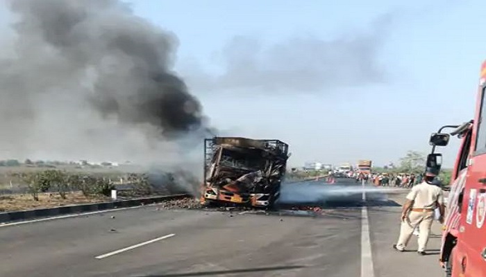 આ બનાવની વિગત એવી છે કે, સુરેન્દ્રનગર જિલ્લાના પાટડી તાલુકાના માલવણ કચ્છ હાઈવે પર અખિયાણા અને ધર્મઠ ગામ વચ્ચે હળવદથી દાડમ ભરીને આવી રહેલી આઈસર ટ્રકના ચાલકે સ્ટીયરિંગ પરનો કાબુ ગુમાવતા ટ્રક આગળ જતા વાહન સાથે અથડાયા બાદ દાડમ ભરેલી આઈસર ટ્રક ભડભડ સળગી ઉઠી હતી. અને પળવારમાં આ આગે વિકરાળ સ્વરૂપ ધારણ કરી લીધું હતું. જયારે અકસ્માત બાદ અજાણ્યો વાહન ચાલક વાહન લઈને ત્યાંથી જતો રહ્યો હતો. જયારે આઈસર સળગી ઉઠતા આઈસરમાં સવાર ડ્રાઇવર અને કંડક્ટર દાઝી ગયા હતા. ડ્રાઇવર અને કંડક્ટરને દાઝેલી હાલતમાં પ્રાથમિક સારવાર અર્થે ધ્રાંગધ્રા હોસ્પિટલ ખાતે લઇ જવાયા બાદ વધુ સારવાર અર્થે રીફર કરવામાં આવ્યા હતા.