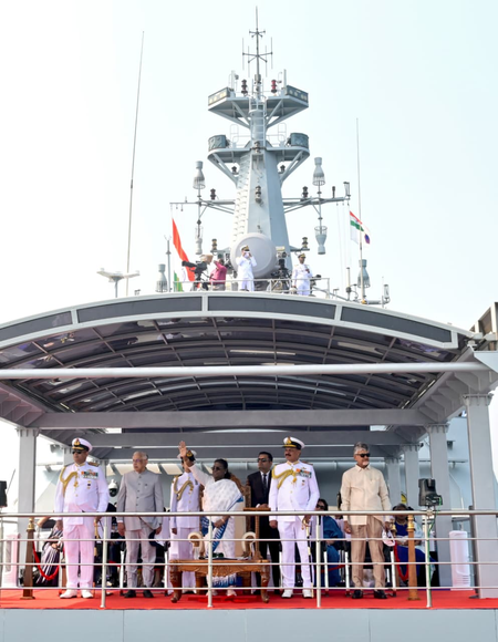ભારતના રાષ્ટ્રપતિ અને સશસ્ત્ર દળોના સર્વોચ્ચ કમાન્ડર દ્રૌપદી મુર્મુએ સ્વદેશી રીતે નિર્મિત ઓફશોર પેટ્રોલ વેસલ INS સુમેધાથી ફ્લીટ રિવ્યુનું નિરીક્ષણ કર્યું. આ પ્રસંગે INS સુમેધાને અશોક પ્રતીકથી શણગારવામાં આવી હતી અને માસ્ટ પર રાષ્ટ્રપતિનો ધ્વજ ફરકાવવામાં આવ્યો હતો.