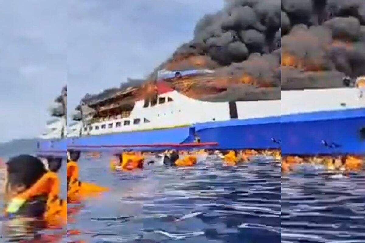 રવિવારે બપોરે ઇન્ડોનેશિયાના સમુદ્રમાં હ્રદયસ્પર્શી અકસ્માત થયો હતો. ‘કિ.મી. બાર્સિલોના વા’ નામના વહાણમાં આગ લાગી. જ્યારે અકસ્માત થયો ત્યારે વહાણમાં 280 થી વધુ મુસાફરો હતા. આગ એટલી ઝડપથી ફેલાઈ ગઈ કે મુસાફરોએ પોતાનો જીવ બચાવવા સમુદ્રમાં કૂદી પડ્યો. આ અકસ્માત ઉત્તર સુલાવેસી નજીક 1:30 વાગ્યે થયો હતો.